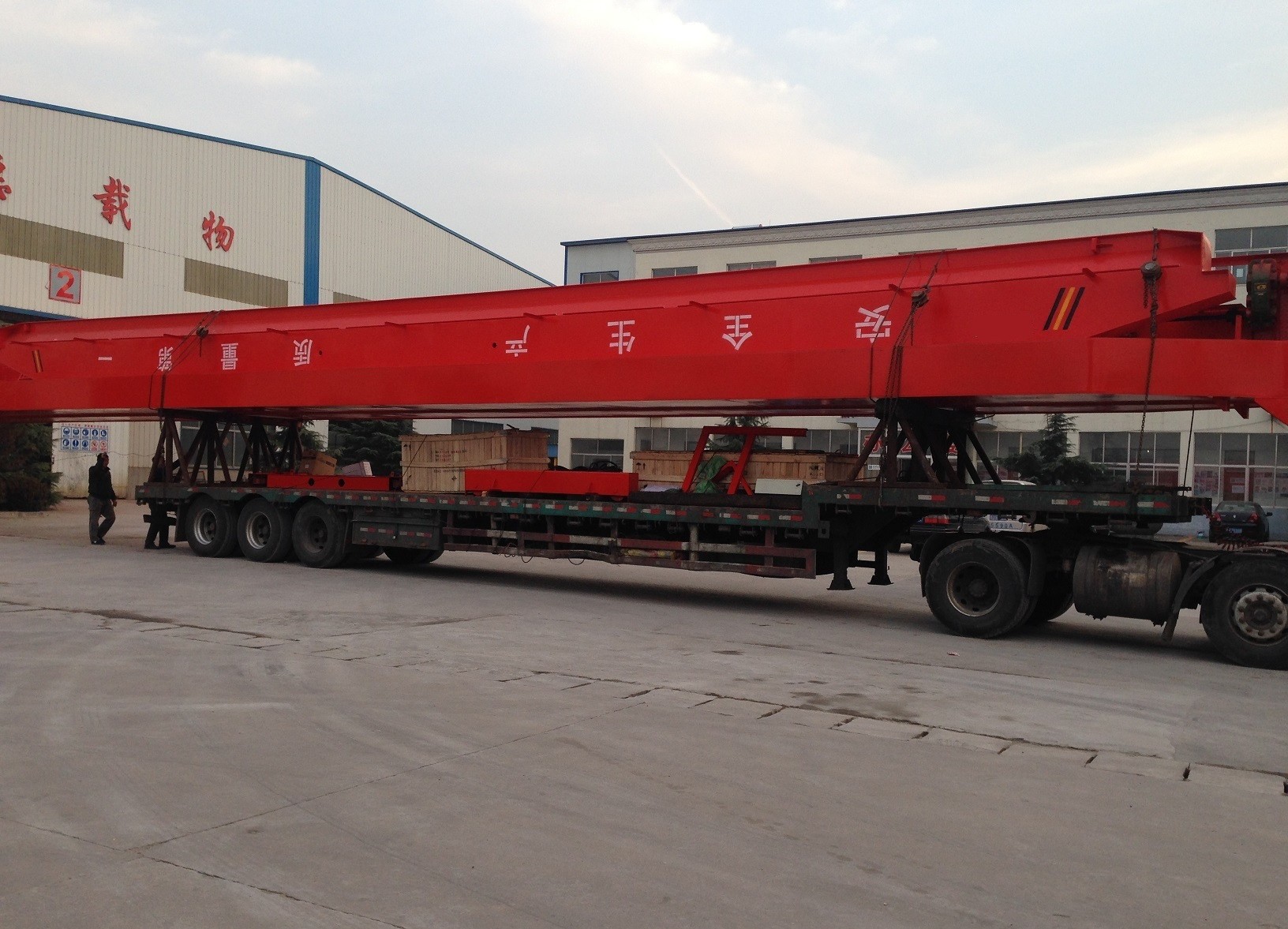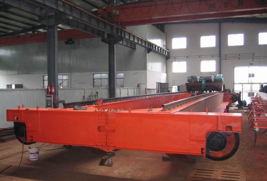 QL電磁掛梁起重機(jī)安裝完成是橋架兩端通過運行裝置直接支撐在高架軌道上的橋架型起重機(jī)。它由橋架(包括主梁和端梁)、起重小車、大車運行機(jī)構(gòu)和電氣控制系統(tǒng)等部分組成。起重小車上裝有起升機(jī)構(gòu)和小車運行機(jī)構(gòu)在橋架主梁上沿小車軌道橫向運行;起重機(jī)沿廠房或露天貨場的高架軌道縱向運行,其掛梁方向分為與主梁平行和與主梁垂直兩種,并在掛梁下方裝有電磁吸盤,通過電磁吸盤完成物料搬運工作。