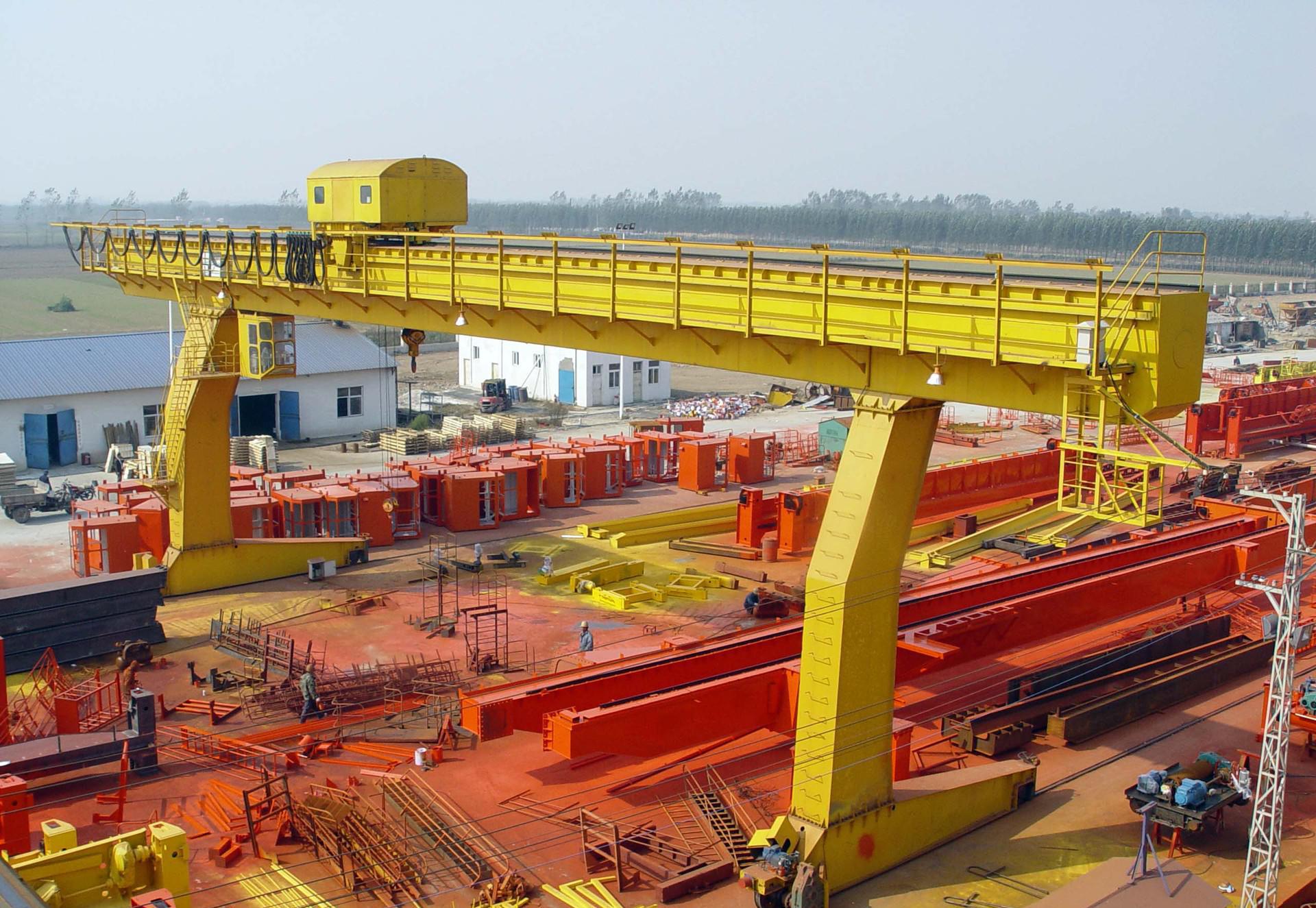 起重機(jī)有橋架、大車運(yùn)行機(jī)構(gòu)、小車、電器設(shè)備等組成。橋架采用箱型雙梁焊接結(jié)構(gòu),大車運(yùn)行機(jī)構(gòu)采用分別驅(qū)動(dòng),全部機(jī)構(gòu)均在操縱室操縱,起重機(jī)導(dǎo)電形式分為電纜和滑線兩種, 適用露天倉(cāng)庫(kù)、料場(chǎng)、鐵路貨站、港口碼頭等裝卸搬運(yùn)。還可以配以多種專用鉤具進(jìn)行多種特殊作業(yè)