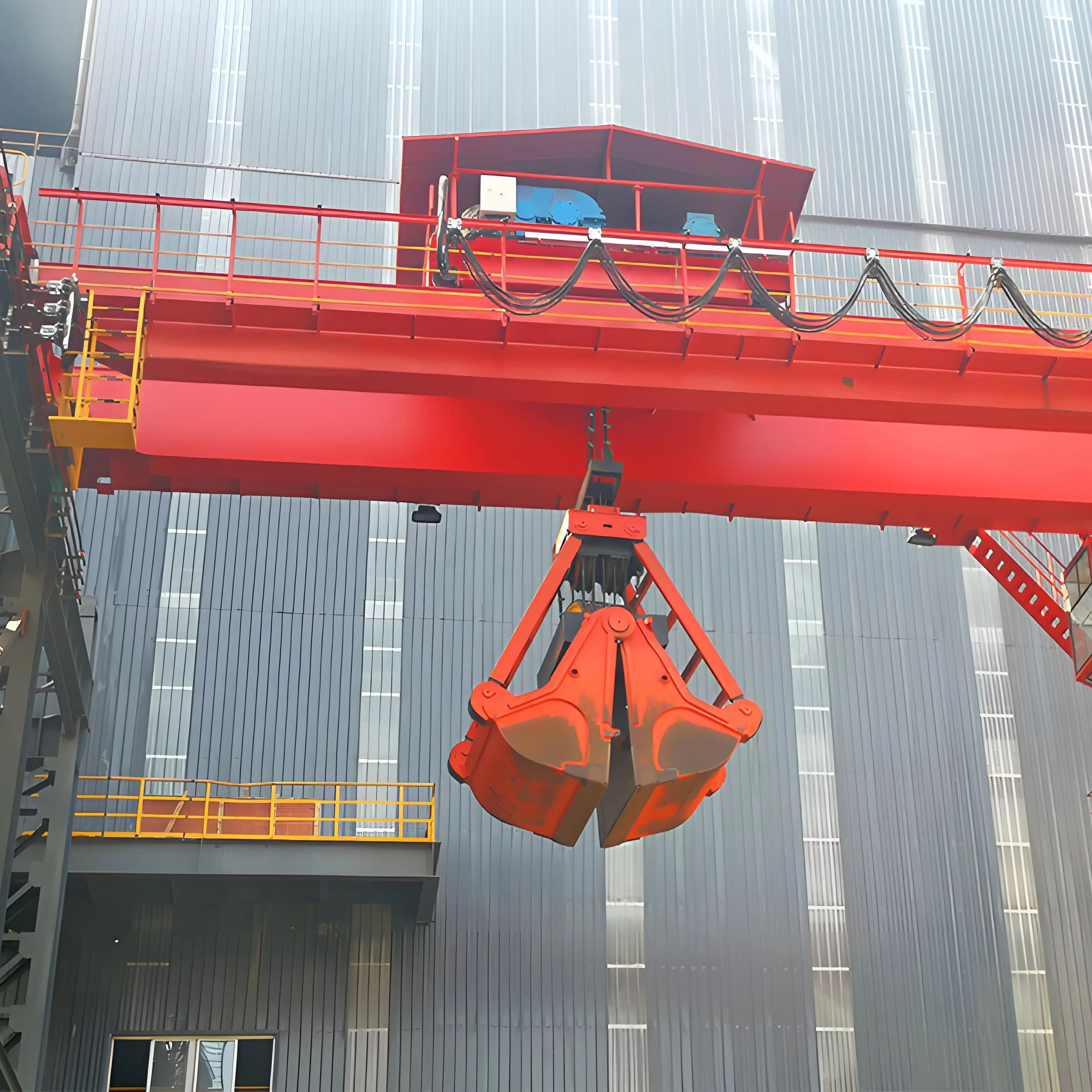 配備雙梁專用 “三合一” 驅(qū)動系統(tǒng),大車、小車運行平穩(wěn);抓斗與起升機構(gòu)聯(lián)動控制,支持駕駛室 / 遙控操作,操作精準且省力。