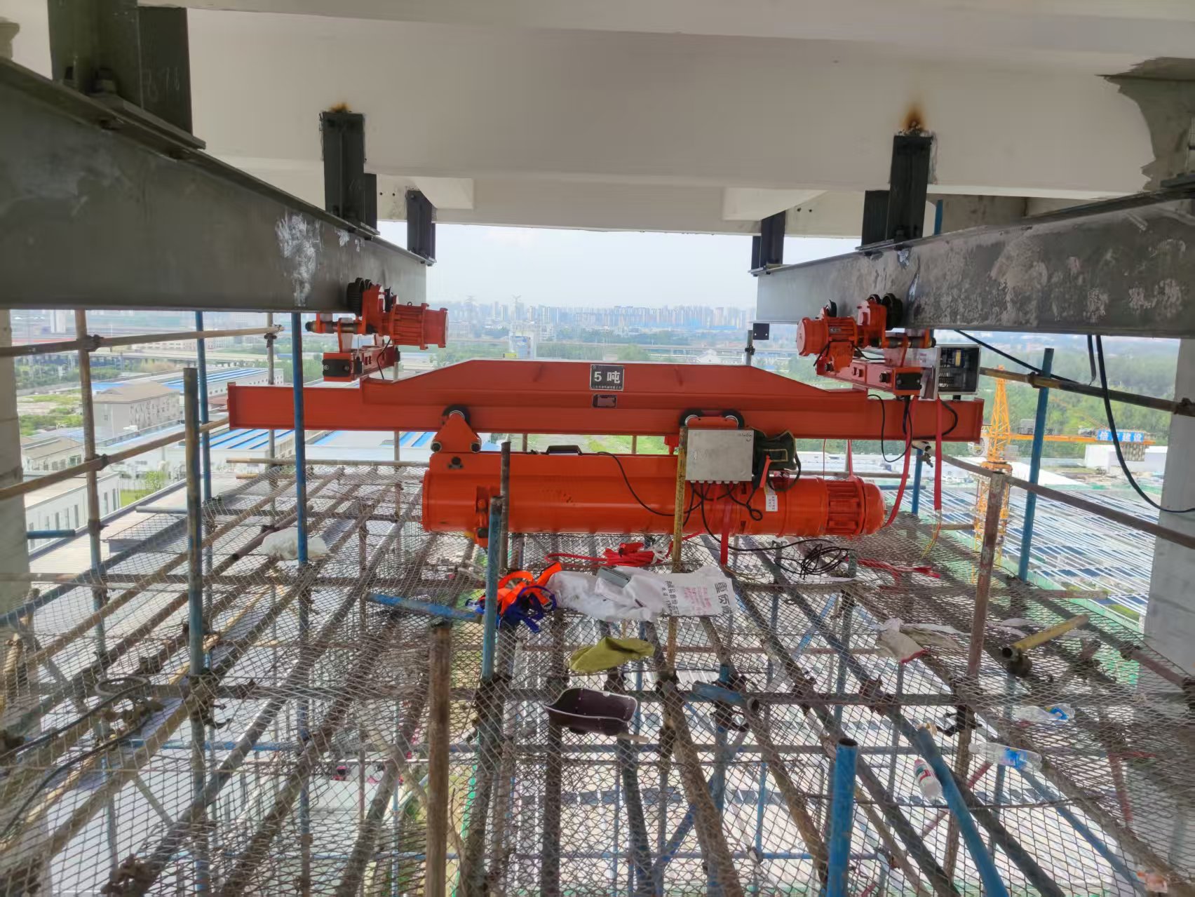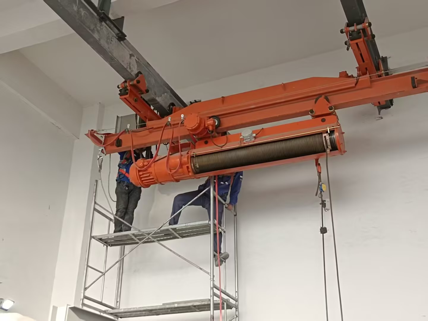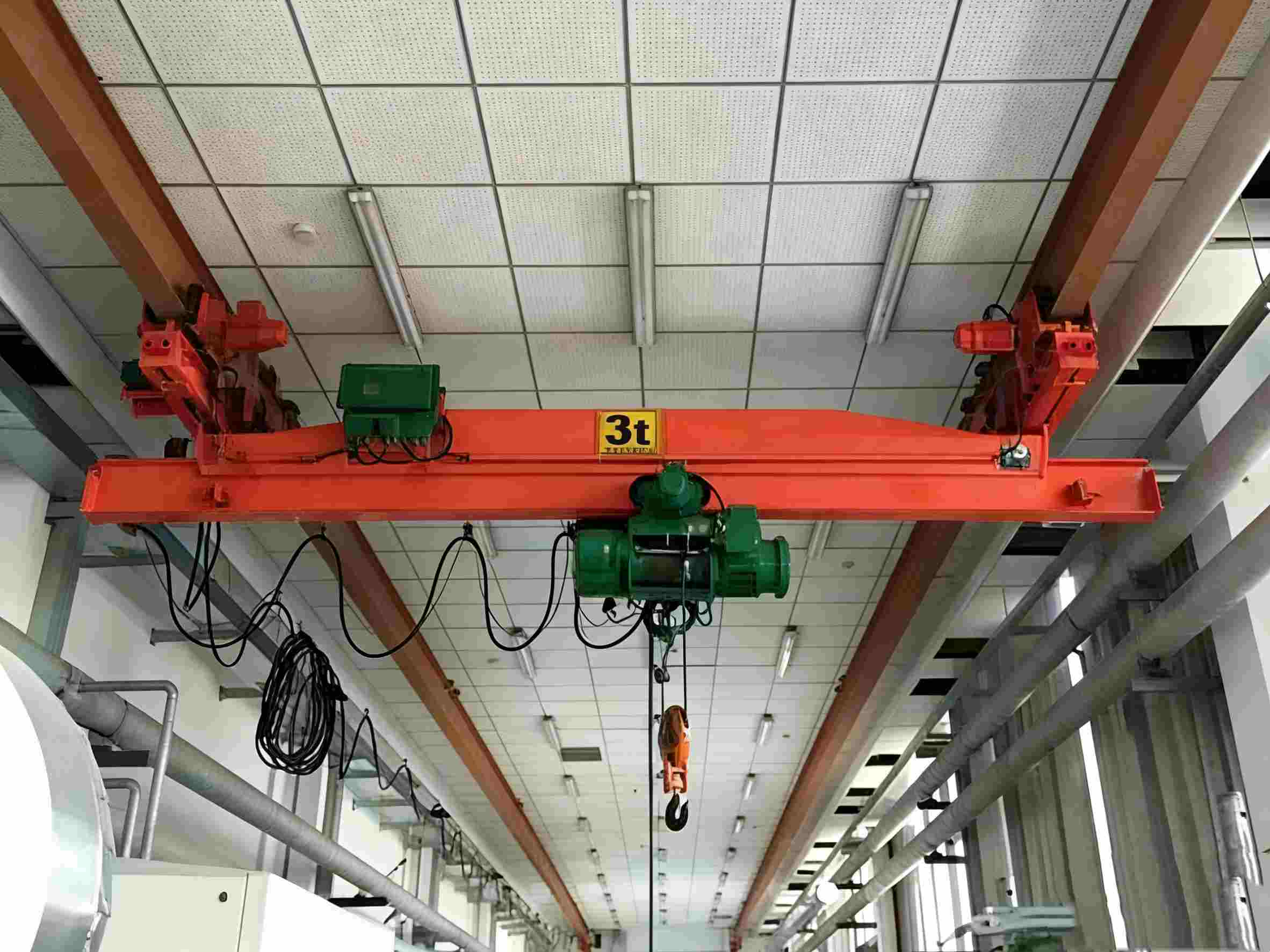 懸掛式安裝:主梁和運行機構(gòu)都懸掛在車間上方的工字鋼軌道下翼緣運行。這種設(shè)計使其特別適合無法安裝傳統(tǒng)支撐式承重梁的廠房。