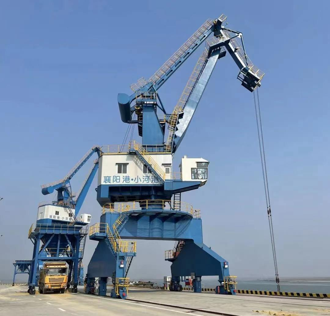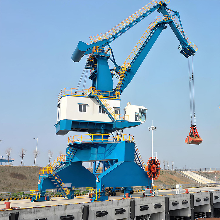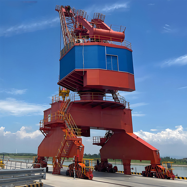 裝卸用門座起重機(jī):這是港口和大型露天堆場最常見的類型。主要用于裝卸件雜貨、散貨(煤炭、礦石)或集裝箱。其設(shè)計(jì)強(qiáng)調(diào)工作速度快、裝卸效率高。通過更換吊具(如換用集裝箱專用吊具或抓斗),可靈活適應(yīng)不同貨種,常被稱為“多用途門機(jī)”。